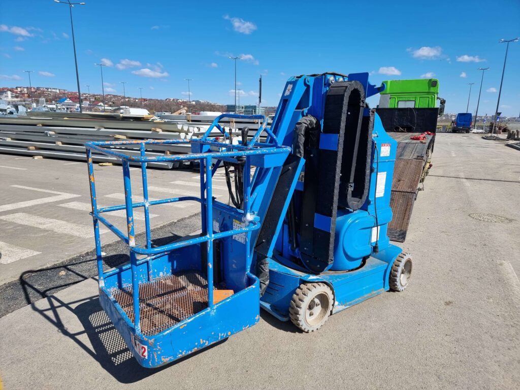 Construcția pe catarg cu braț articulat asigură o poziționare precisă față de punctul de lucru și stabilitate în exploatare, fiind ideală pentru întreținere, montaj de instalații și finisaje în depozite, hale și centre comerciale.